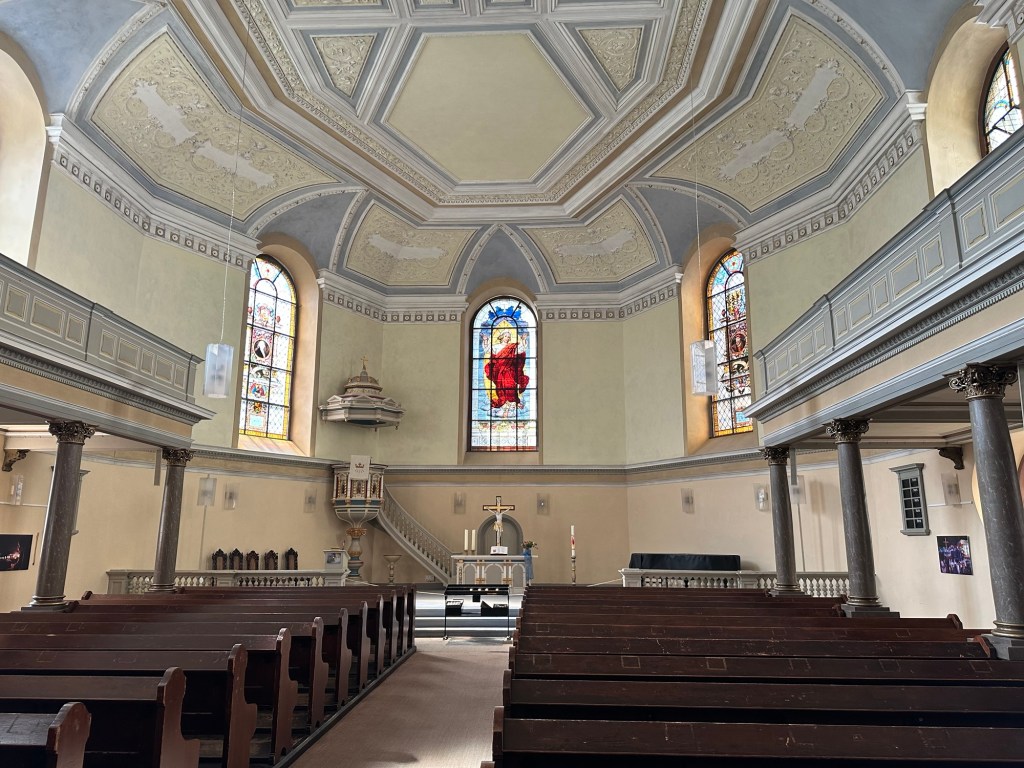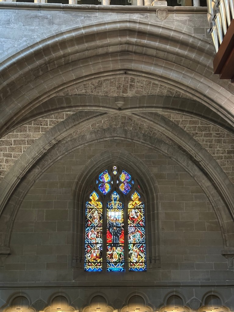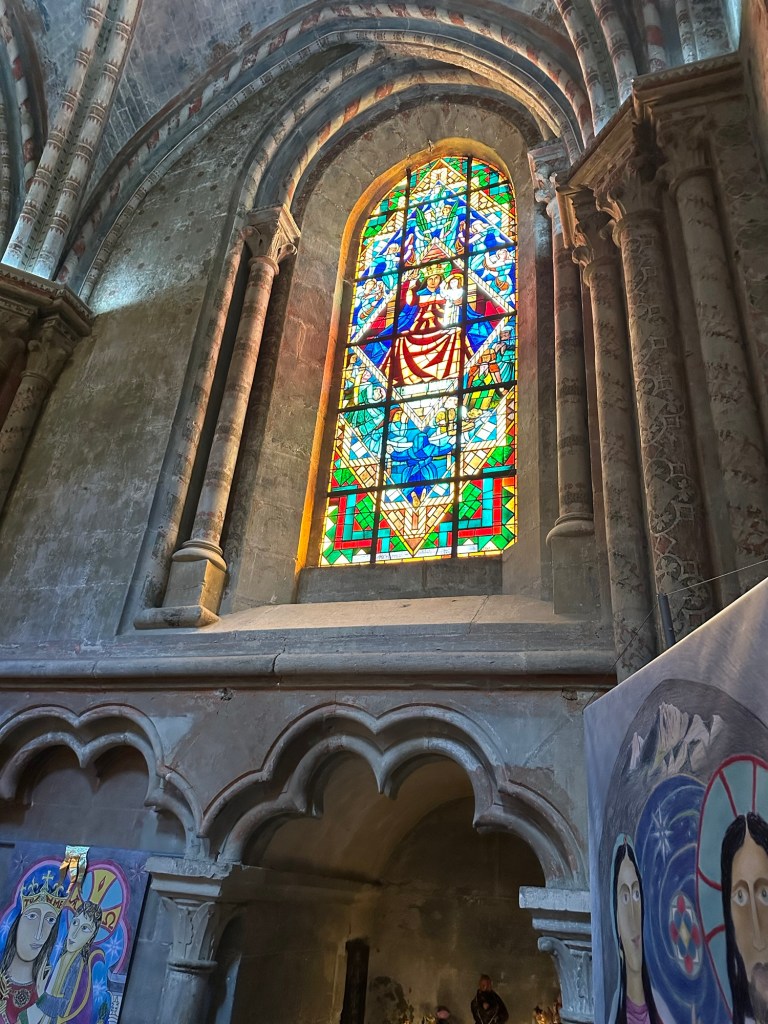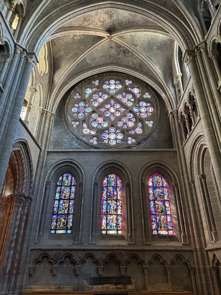 You may note the rose window – more on that later but this church has the most impressive stained glass we have seen in many years.