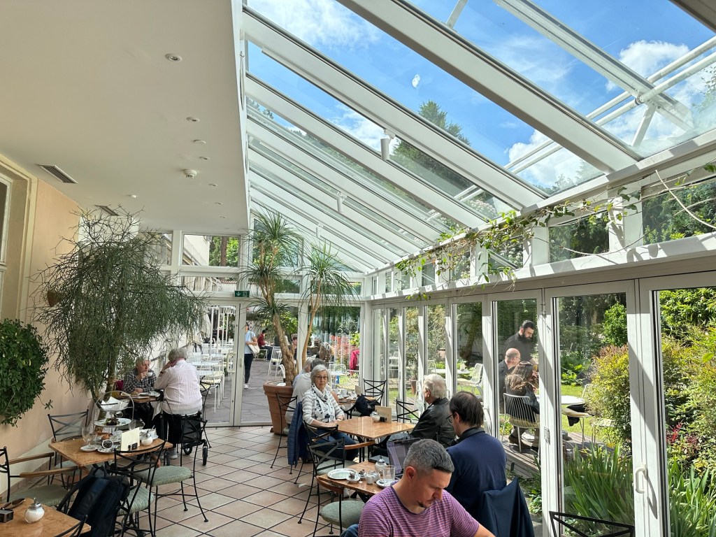 We had our breakfast at the Café/Tearoom a few minutes walk away down by the lake. Perfectly adequate but we think we spoiled ourselves with the Paris breakfast on Thursday morning – same ingredients (juice, coffee & croissant) but so much better.