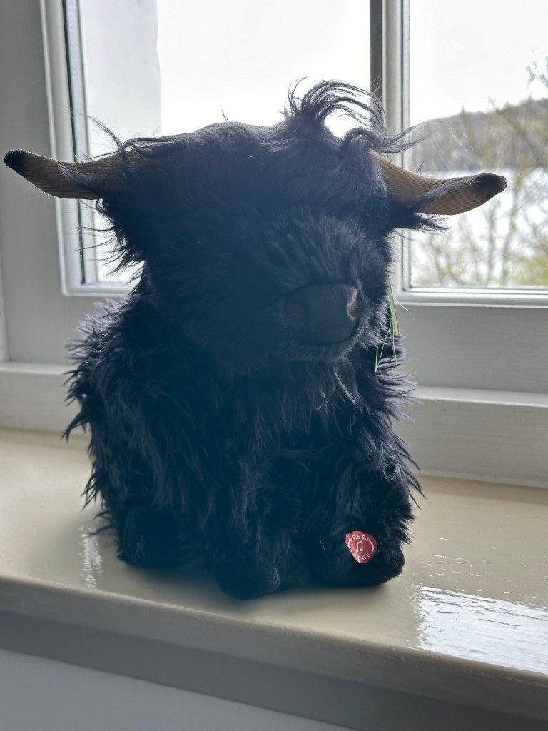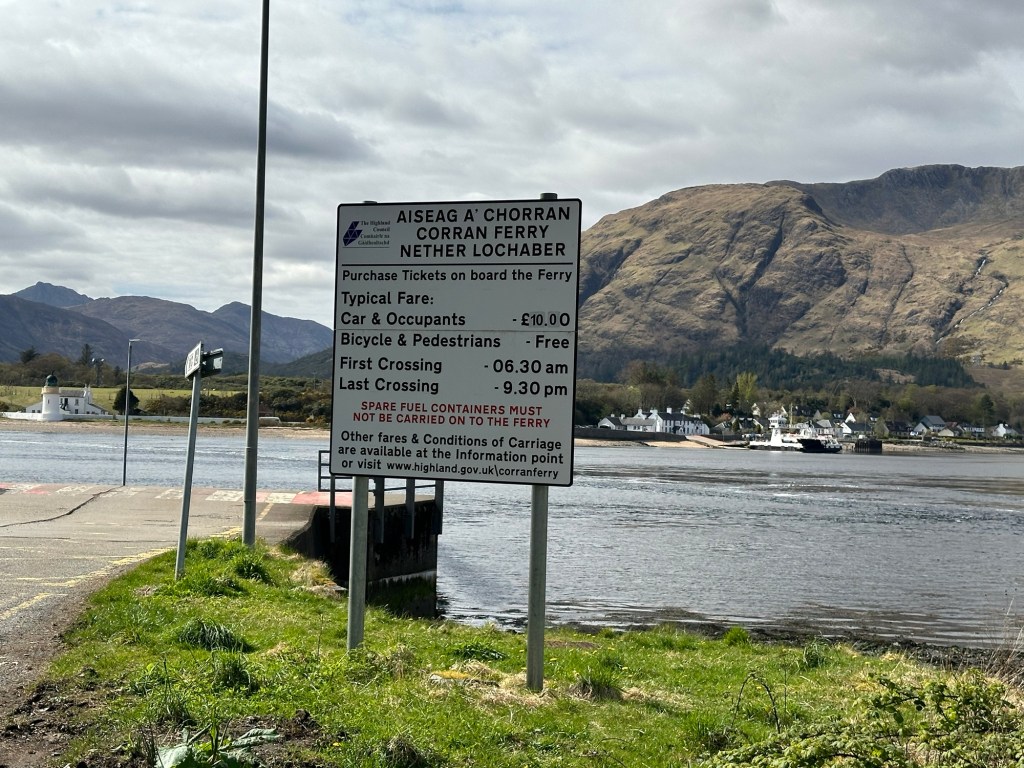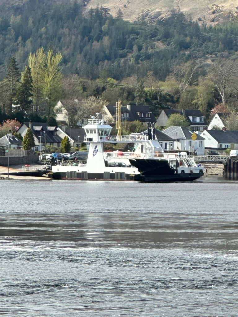 Saturday’s journey up was pleasant and uneventful and it was especially pleasing to have such ‘unusual’ (as in fine dry & quite warm) weather. On the way we stopped in Callander for coffee (and a purchase see below), just outside Tyndrum for a good light lunch and eventually we got the Corran ferry over to Ardgour.