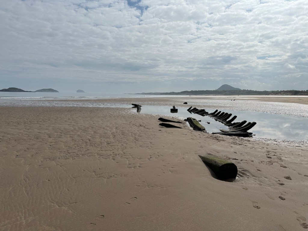 Feeling quite happy with my slow stroll I walked the short distance to the wreck that was revealed when most of the sand disappeared in the storms earlier this year. It seems even more of it is on display now.