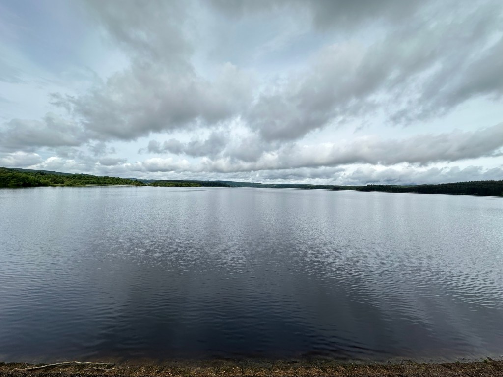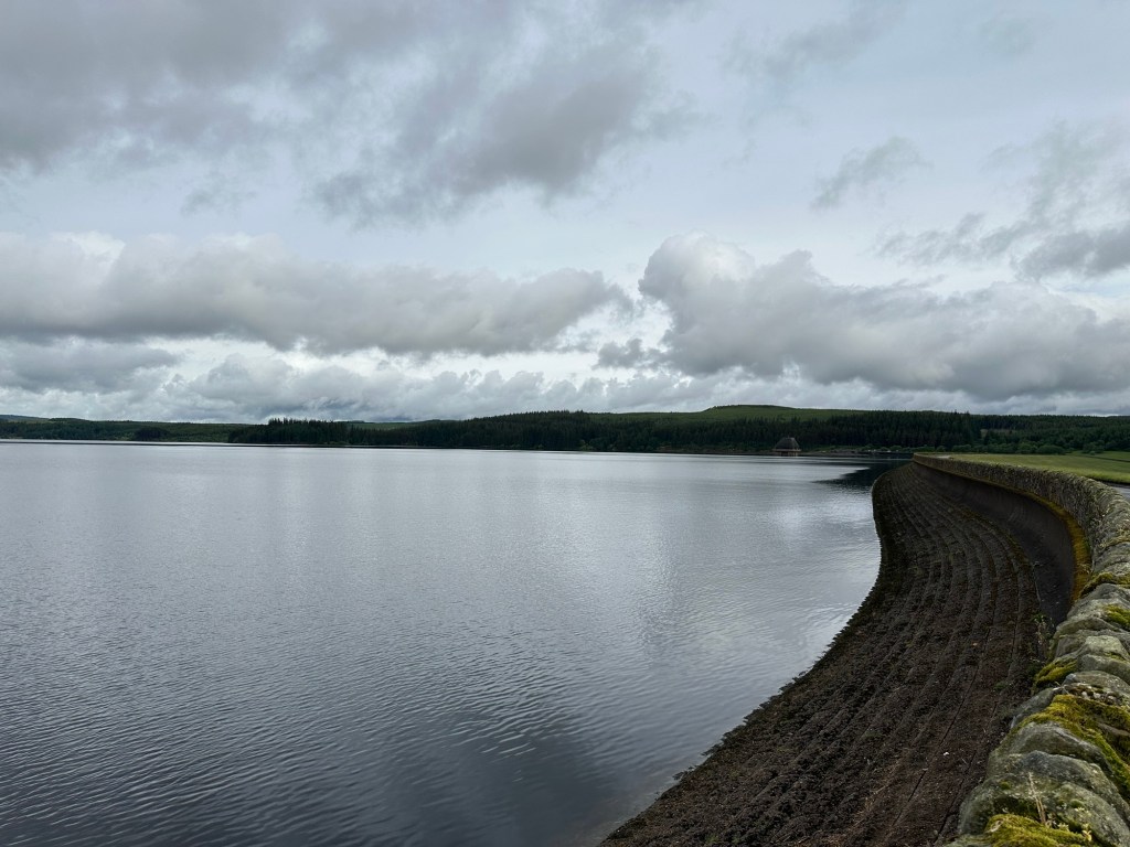Sunday so far has been good. After breakfast we decided, having driven past it severally, to have a short walk down by Kielder Water. The weather is very different today – it had rained most of the night and more is expected. One small downside of our chosen walk was our frost encounter so far with the dreaded midges. Luckily their presence during the weekend was not totally unexpected so we were prepared and a quick application of Smidge was sufficient to protect us.