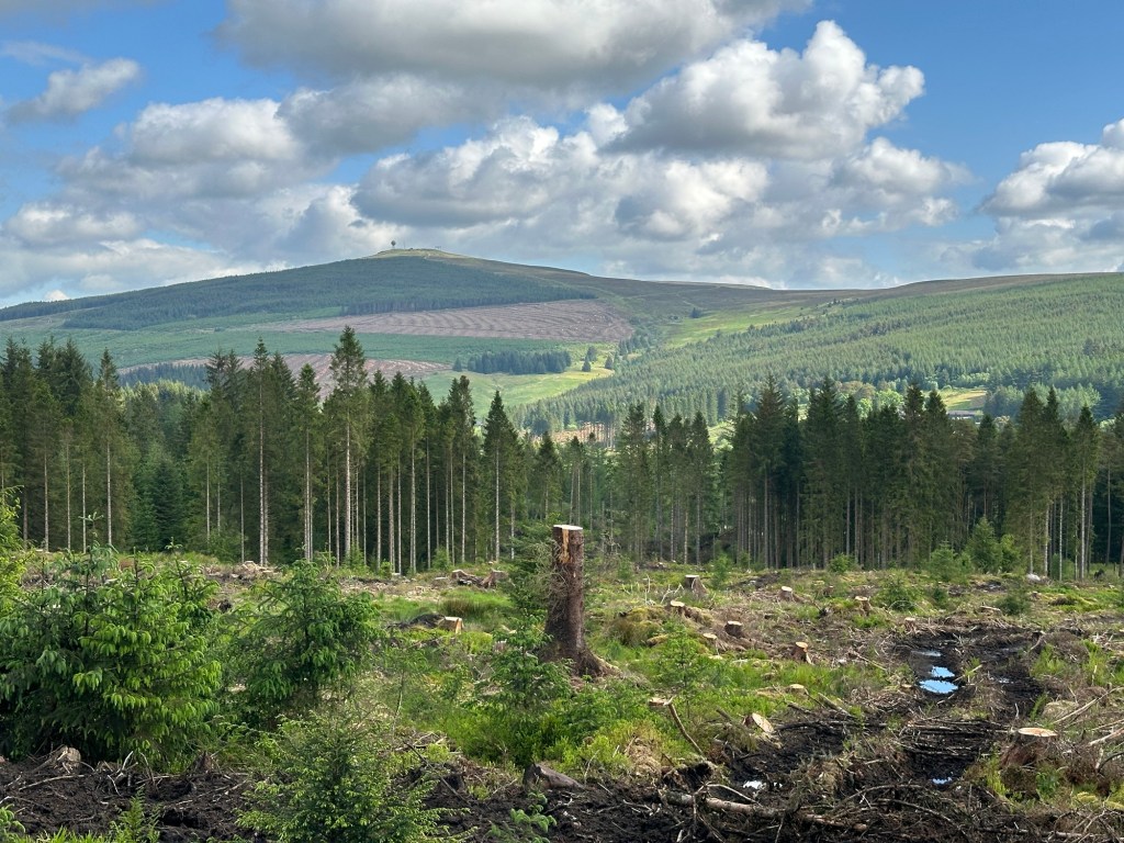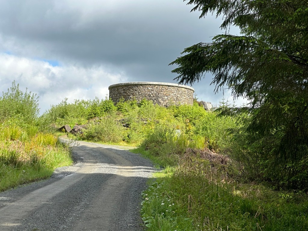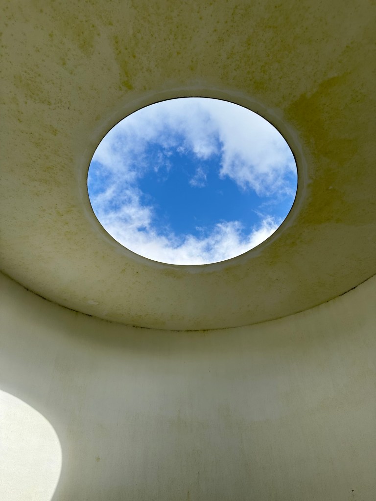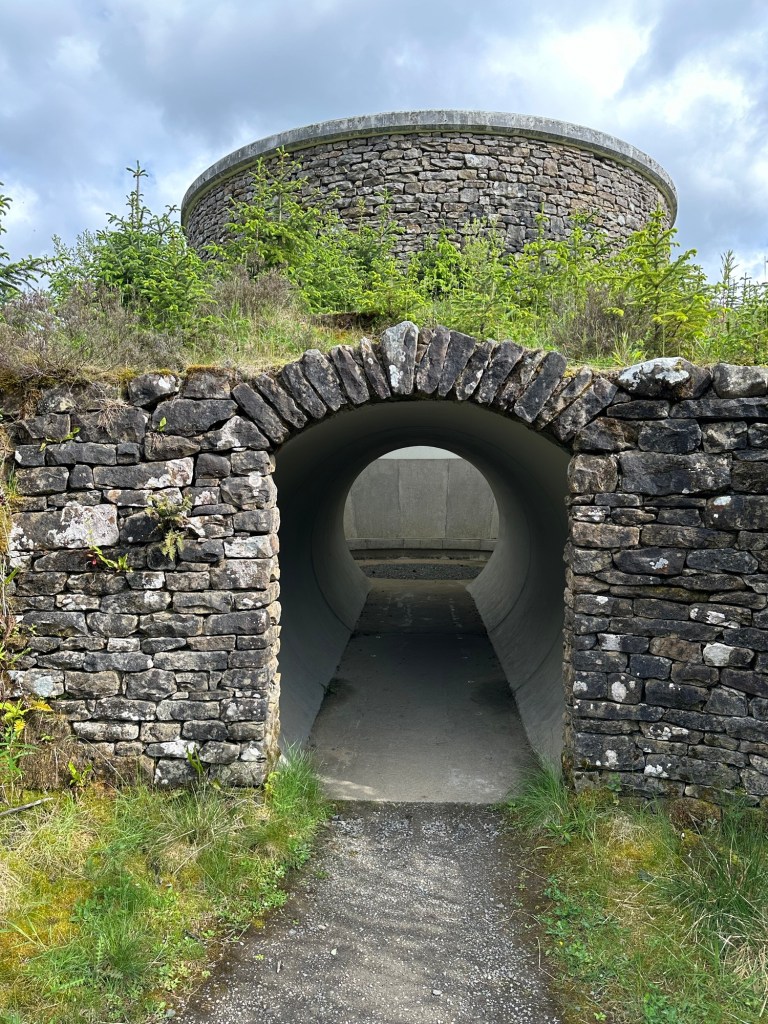 On Saturday morning, as we were up early anyway, we went to find the James Turrell Skyspace at Cat Cairn (quite near here). We knew that the walk uphill from the car park to the actual place was going to be a bit of a challenge for me but, by taking it very steadily, I got there! The terrain ‘forestry’ – possibly one of my least favourites when out in the wilds but the Skyspace was more than adequate compensation.