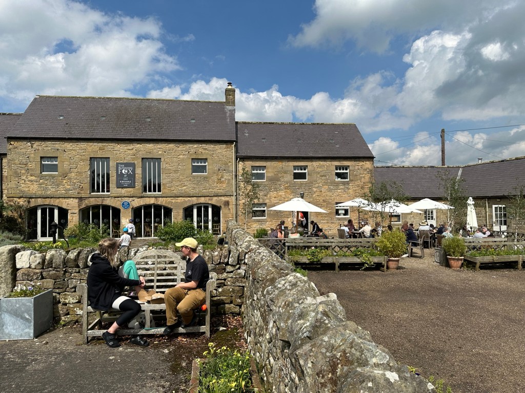 The walk back down to the car was much easier (and considerably quicker!!) and we plotted a route to our next destination. Kirkharle is the birthplace of one Lancelot ‘Capability’ Brown. We weren’t actually there for the house & exhibition though. We had heard that the amazing Running Fox Bakery had taken over the café in the Courtyard there and fancied a light lunch. We were lucky with our timing as we managed to get a table though most that arrived after us either had a long wait or were turned away. The Egg Mayo sandwich we shared (because they are HUGE) was really very, very good. We bought cakes which served as puddings after our dinner back at the cottage. Also very good.
